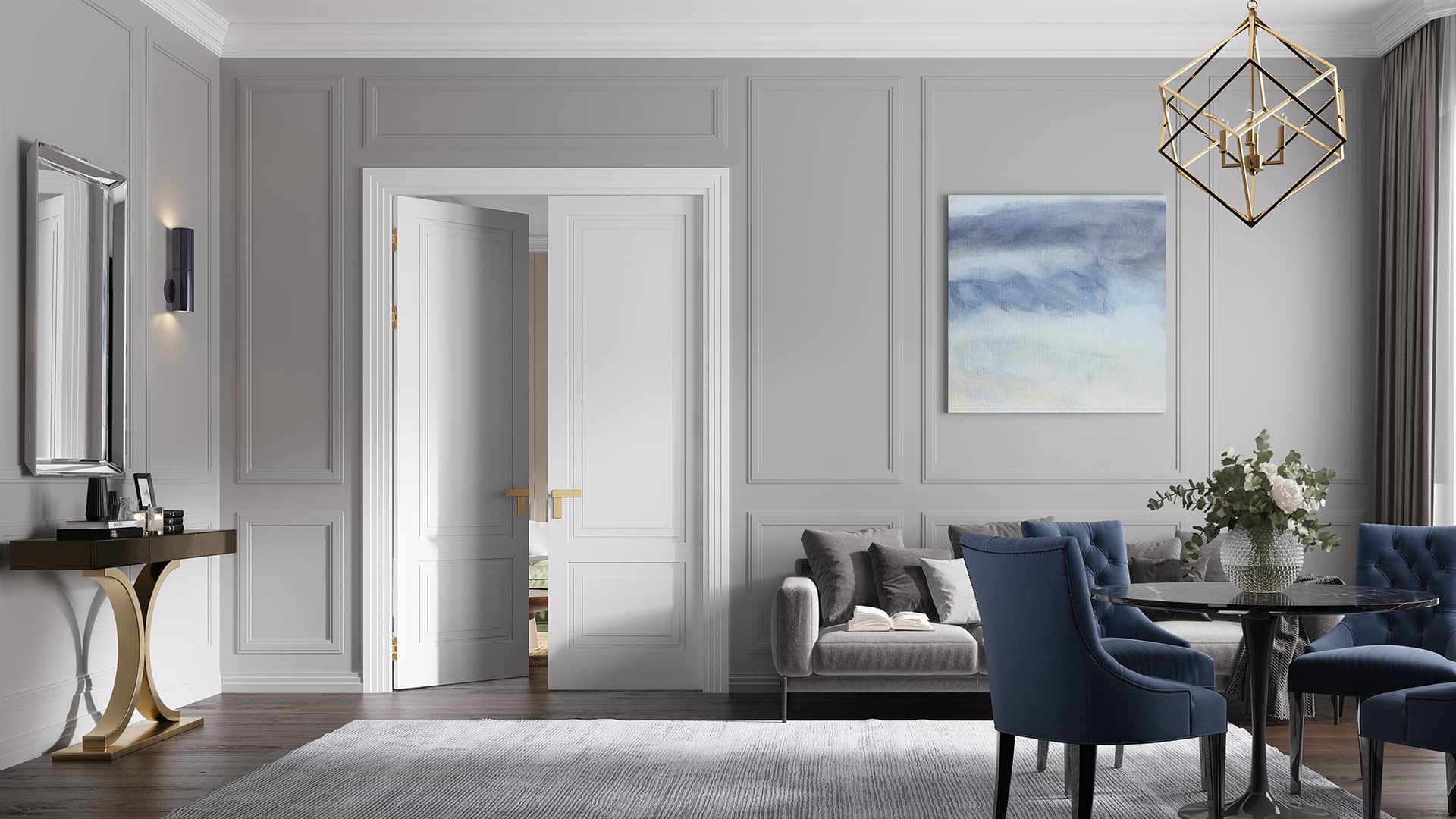 Рокка (в переводе с итал. «скала») — неоклассическая коллекция со строгими лаконичными формами и четкими очертаниями профиля. Рисунок на двери выполнен по технологии фрезерования, позволяющей наносить любое изображение на цельную поверхность полотна.