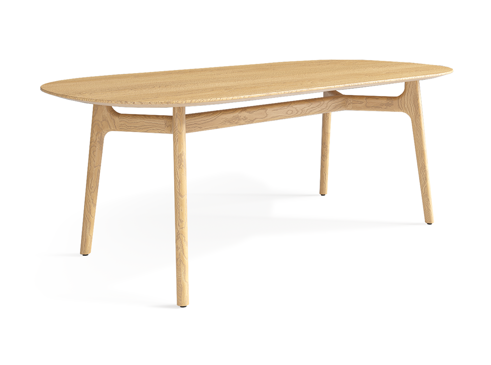 Стол, выполненный в лаконичном дизайне, станет основным элементом мебели в обеденной зоне, а также идеально подойдёт для переговорных комнат в офисных помещениях. Изделие полностью сделано из массива дуба, а матовые древесные отделки раскрывают красоту этого природного материала. Округлые формы стола наполняют пространство истинным уютом, смягчая геометрию стен и другой мебели. Надёжные опоры представляют собой прочную и цельную конструкцию из массива дуба, которая не имеет видимых элементов крепления — ничто не отвлекает от лаконичного дизайна изделия.